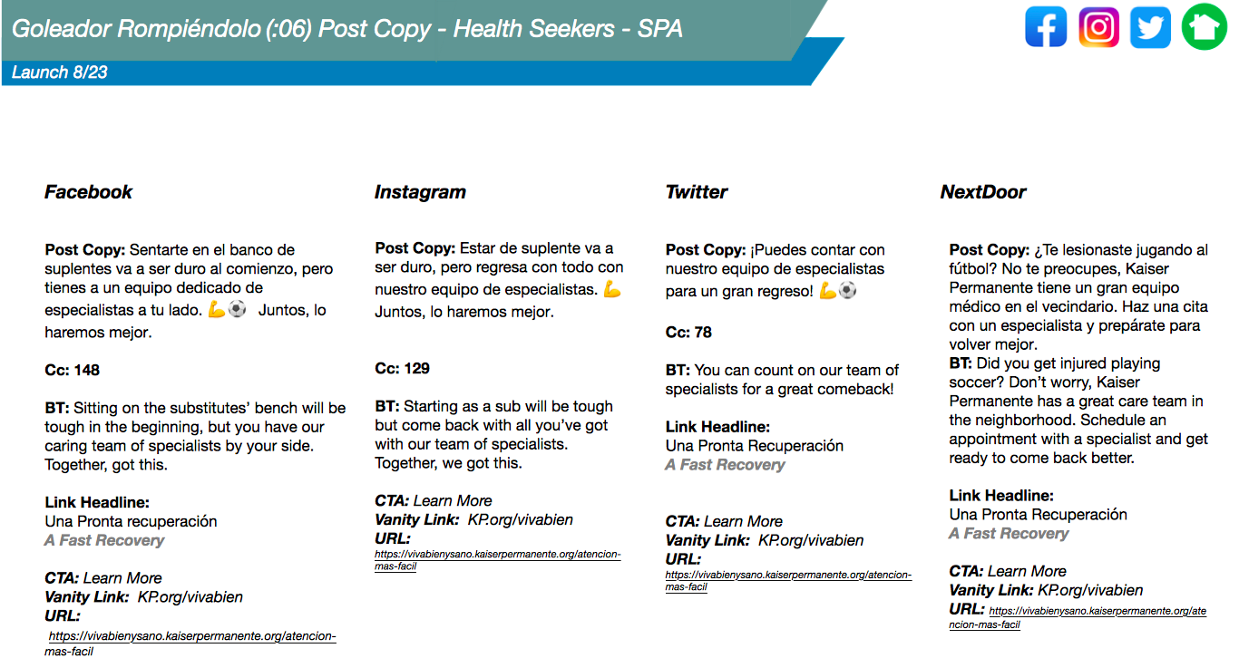 I WORKED AS A BILINGUAL ACD (ASSOCIATE CREATIVE DIRECTOR) FOR ONE OF THE MOST IMPORTANT HEALTHCARE BRANDS IN THE UNITED STATES. I CREATED TV SPOTS, OLVS, AND WROTE THEIR SOCIAL CALENDAR IN BOTH ENGLISH AND SPANISH. THE CHALLENGE IN PHARMA IS TO BE AS CLEAR AS POSSIBLE WITH THE KEY MESSAGING, WHILE STILL HAVING FUN. CHECK OUT THE CONTENT WE PRODUCED FOR THEIR LAST CAMPAIGN.